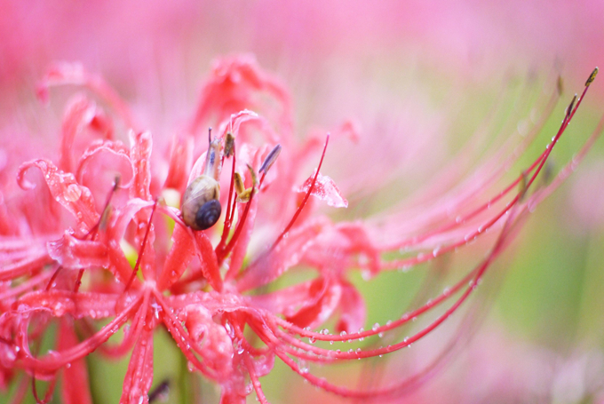 彼岸花分为红色、白色两种,传说,红色彼岸花盛开于地狱,白色彼岸花绽放于天堂。红色的彼岸花又称曼珠沙华(manjusaka),《法华经》中的四华(花)之一。